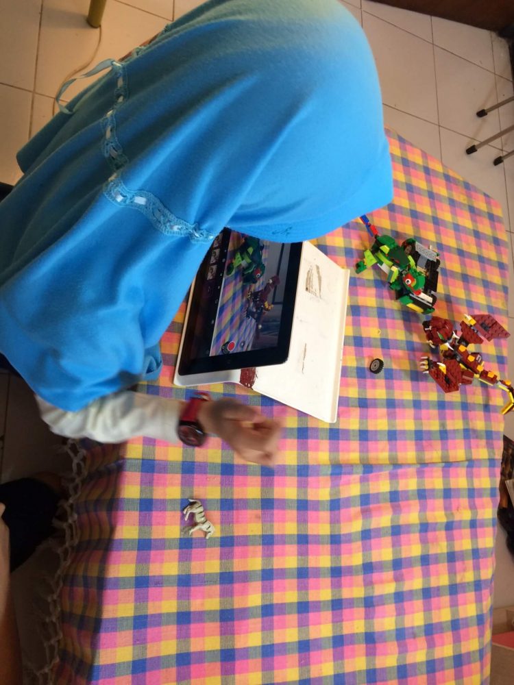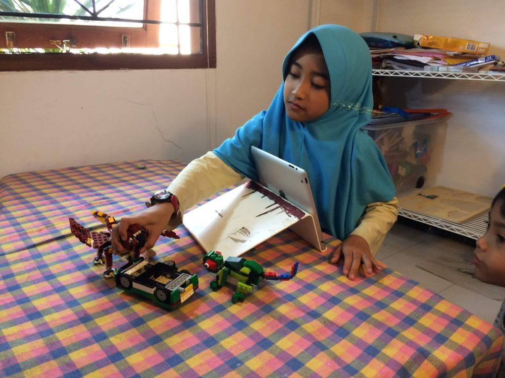 Lalu dilanjut dengan pembuatan permainan Lego creator 31073, dan sempat di protes oleh kaka Azmi..