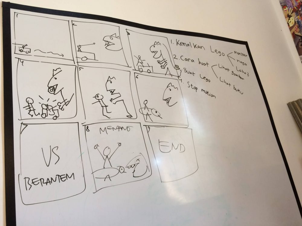 hasil mainan Lego, stop motion dan cara buatnya dapat dilihat di video berikut. Kalau boleh jujur, buatnya memperlukan waktu 2-3 hari :D. Dikarenakan akan ada keributan-keributan kecil didalamnya dan harus menunggu anak-anak ada moodnya..